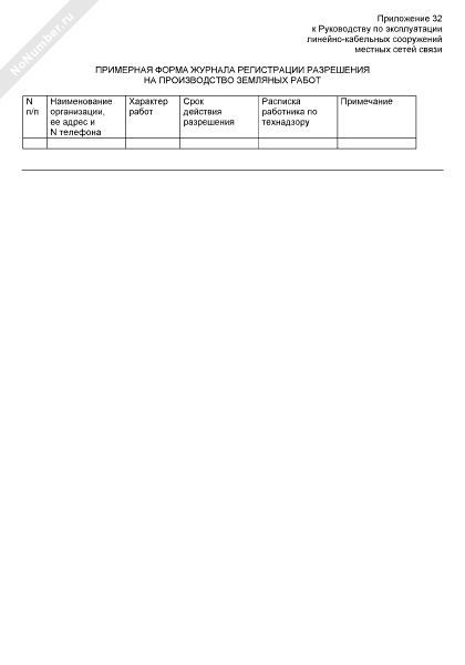 - 307Примерная форма журнала регистрации разрешения на производство земляных работ