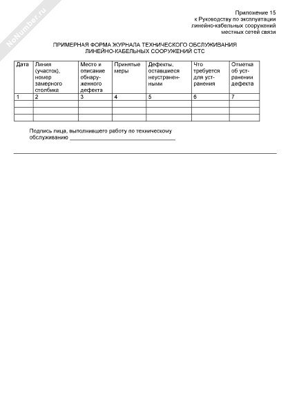- 304Примерная форма журнала технического обслуживания линейно-кабельных сооружений сельских телефонных сетей