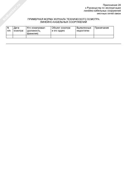 - 306Примерная форма журнала технического осмотра линейно-кабельных сооружений местных сетей связи