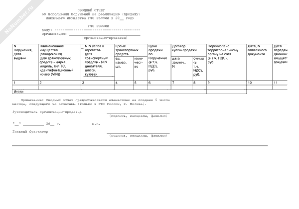 - 3252Форма сводного отчета об исполнении Поручений на реализацию (продажу) движимого имущества ГФС России