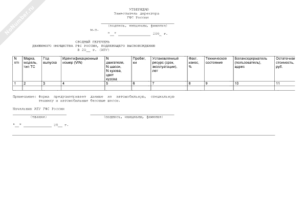 - 3246Форма сводного перечня движимого имущества (автомобильная, специальная техника и автомобильные базовые шасси) ГФС России, подлежащего высвобождению