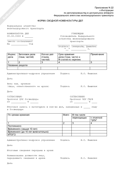 - 3255Форма сводной номенклатуры дел Федерального агентства железнодорожного транспорта