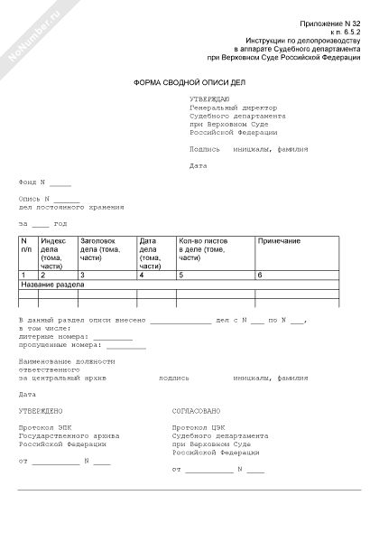 - 3260Форма сводной описи дел в Судебном департаменте при Верховном Суде Российской Федерации
