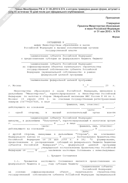 - 3344Форма соглашения между Министерством образования и науки Российской Федерации и высшим исполнительным органом государственной власти субъекта Российской Федерации о предоставлении субсидии из федерального бюджета бюджету субъекта Российской Федерации на софинансирование объектов капитального строительства государственной собственности субъекта Российской Федерации (муниципальной собственности), не включенных в федеральные целевые программы