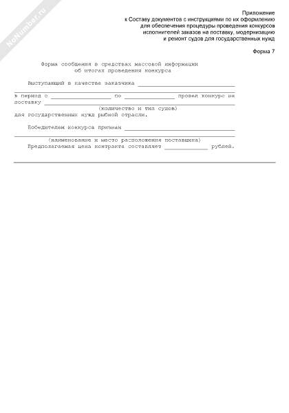 - 3349Форма сообщения в средствах массовой информации об итогах проведения конкурса на строительство судов для государственных нужд рыбной отрасли. Форма 7