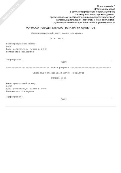 - 3357Форма сопроводительного листа пачки конвертов для инспекции ФНС России, выполняющей функции централизованной обработки данных