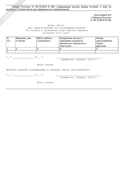 - 3383Форма списка лиц, представляемых для награждения медалью «За заслуги в проведении Всероссийской переписи населения 2010 года»