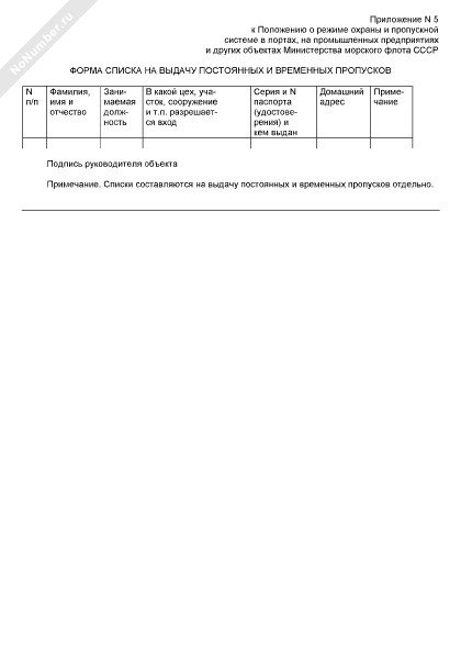- 3384Форма списка на выдачу постоянных и временных пропусков на промышленных предприятиях и других объектах Министерства морского флота СССР