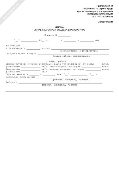 - 3393Форма справки анализа воздуха в резервуаре при эксплуатации магистральных нефтепродуктопроводов