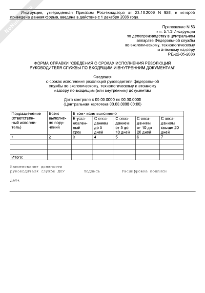 - 3392Форма справки «Сведения о сроках исполнения резолюций руководителя Федеральной службы по экологическому, технологическому и атомному надзору по входящим (или внутренним) документам»