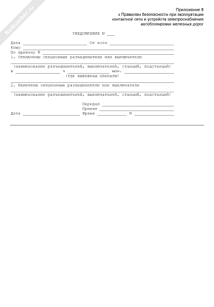 - 3564Форма уведомления о переключении разъединителей и выключателей и других коммутирующих аппаратов при эксплуатации контактной сети и устройств электроснабжения автоблокировки железных дорог