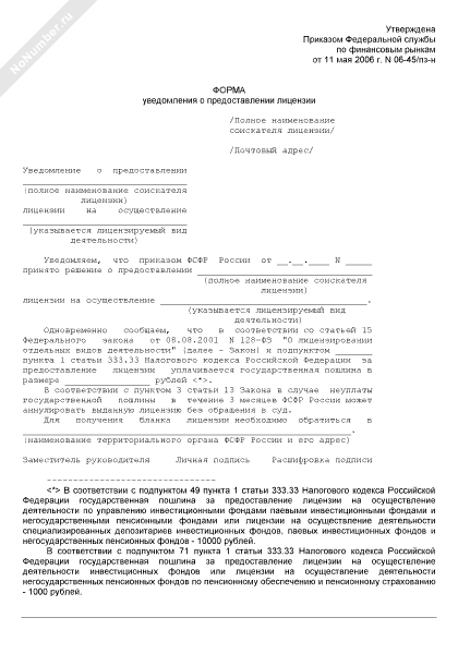 - 3569Форма уведомления о переоформлении документа, подтверждающего наличие (или продлении срока действия) лицензии на осуществление деятельности