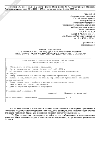 - 3579Форма уведомления о возможности отмены (одностороннего прекращения применения в Российской Федерации) действующего стандарта (обязательная форма)