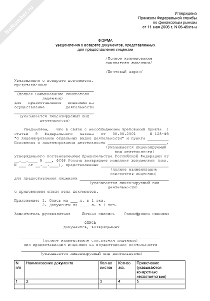 - 3566Форма уведомления о возврате документов, представленных для предоставления лицензии на осуществление деятельности