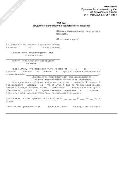 - 3574Форма уведомления об отказе в предоставлении лицензии