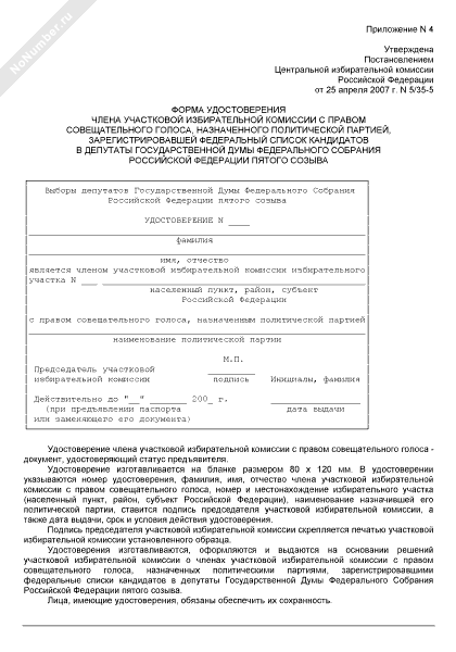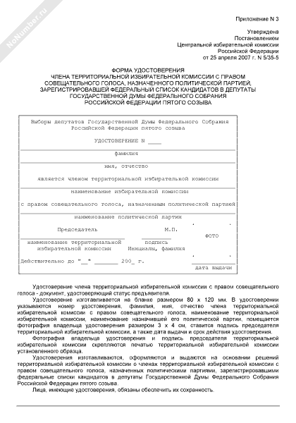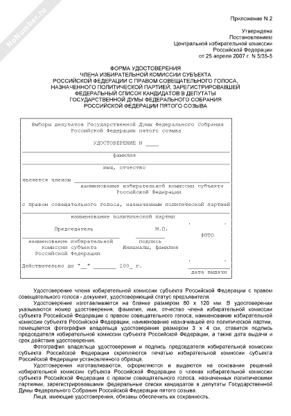 - 3666Форма удостоверения члена участковой избирательной комиссии с правом совещательного голоса, назначенного политической партией, зарегистрировавшей федеральный список кандидатов в депутаты Государственной Думы Федерального Собрания Российской Федерации пятого созыва