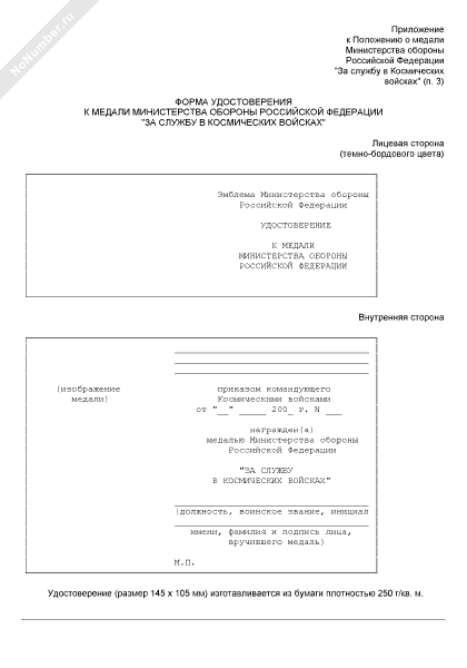 - 3675Форма удостоверения к медали Министерства обороны Российской Федерации «За службу в космических войсках»