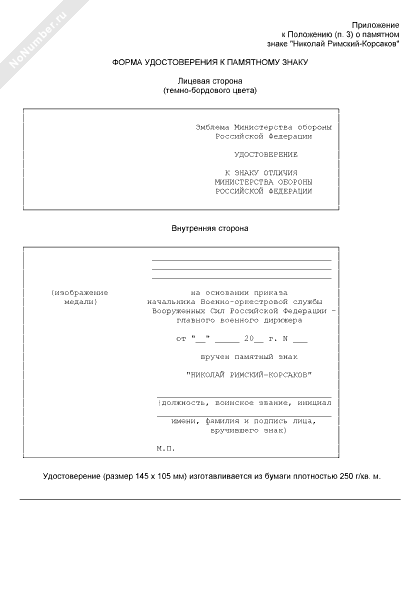 - 3661Форма удостоверения к памятному знаку «Николай Римский-Корсаков» Министерства обороны Российской Федерации