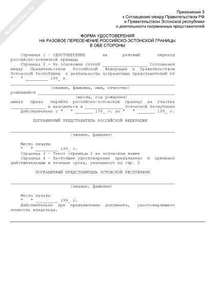 - 3673Форма удостоверения на разовое пересечение российско-эстонской границы в обе стороны