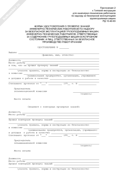 - 3674Форма удостоверения о проверке знаний инженерно-технических работников по надзору за безопасной эксплуатацией грузоподъемных машин, инженерно- технических работников, ответственных за содержание грузоподъемных машин в исправном состоянии, и лиц, ответственных за безопасное производство работ кранами