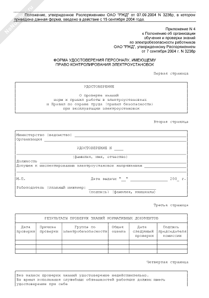 - 3669Форма удостоверения персоналу ОАО «РЖД», имеющему право контролирования электроустановок