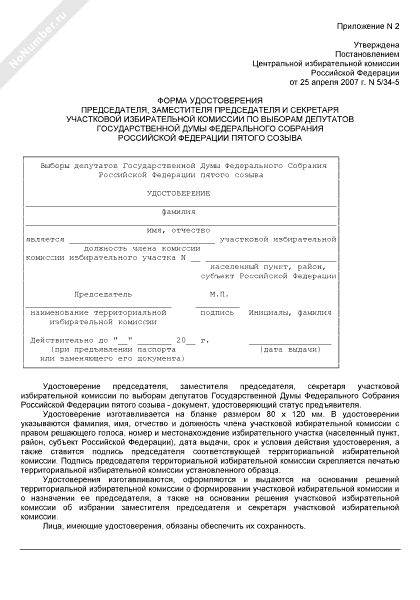 - 3678Форма удостоверения председателя, заместителя председателя и секретаря участковой избирательной комиссии по выборам депутатов Государственной Думы Федерального Собрания Российской Федерации пятого созыва