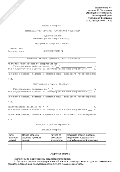 - 3690Форма удостоверения инспектора по энергонадзору Министерства обороны Российской Федерации