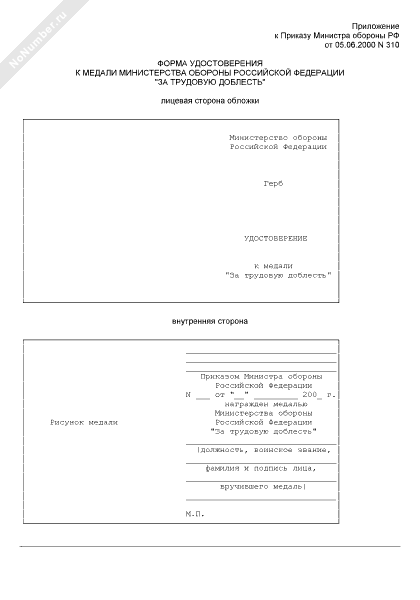 - 3697Форма удостоверения к медали Министерства обороны Российской Федерации «За трудовую доблесть»