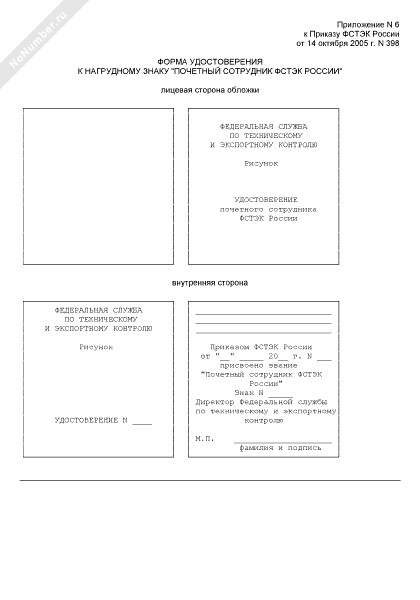 - 3684Форма удостоверения к нагрудному знаку «Почетный сотрудник Федеральной службы по техническому и экспортному контролю России»