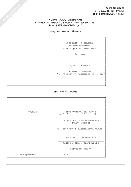 - 3685Форма удостоверения к знаку отличия Федеральной службы по техническому и экспортному контролю России «За заслуги в защите информации»