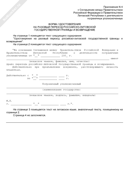 - 3681Форма удостоверения на разовый переход российско-литовской государственной границы и возвращение