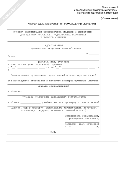 - 3692Форма удостоверения о прохождении теоретического обучения в учебном учреждении системы сертификации оборудования, изделий и технологий для ядерных установок, радиационных источников и пунктов хранения