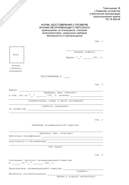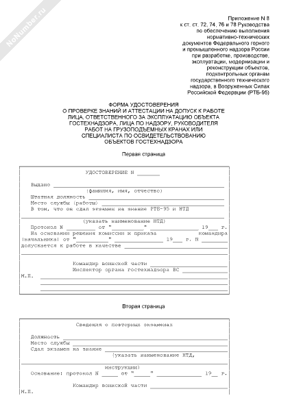 - 3694Форма удостоверения о проверке знаний и аттестации на допуск к работе лица, ответственного за эксплуатацию объекта гостехнадзора, лица по надзору, руководителя работ на грузоподъемных кранах или специалиста по освидетельствованию объектов Гостехнадзора