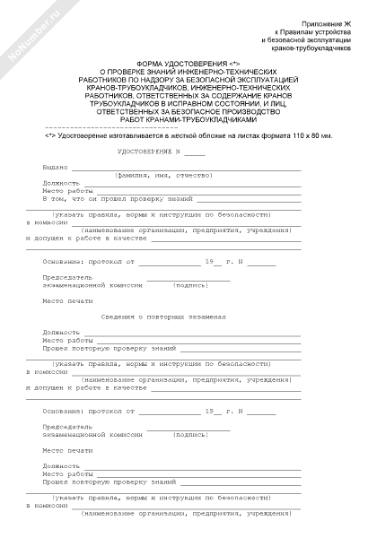 - 3700Форма удостоверения о проверке знаний инженерно-технических работников по надзору за безопасной эксплуатацией кранов-трубоукладчиков, инженерно-технических работников, ответственных за содержание кранов-трубоукладчиков в исправном состоянии, и лиц, ответственных за безопасное производство работ кранами-трубоукладчиками