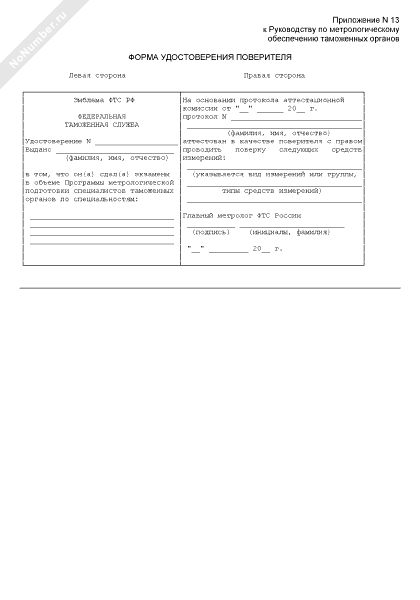 - 3696Форма удостоверения поверителя о сдаче экзаменов в объеме Программы метрологической подготовки специалистов таможенных органов