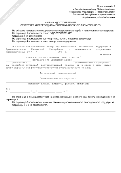 - 3682Форма удостоверения секретаря и переводчика пограничного уполномоченного на российско-литовской государственной границе