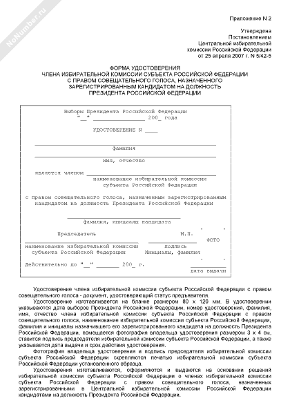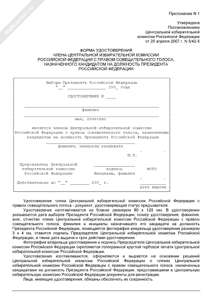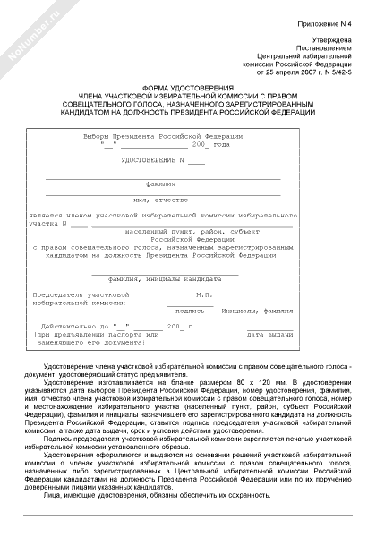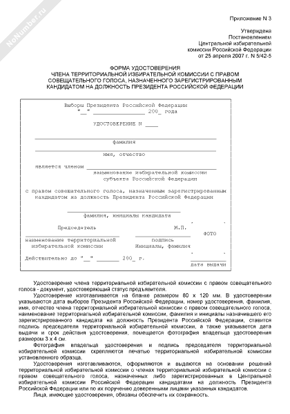 - 3707Форма удостоверения члена участковой избирательной комиссии с правом совещательного голоса, назначенного зарегистрированным кандидатом на должность Президента Российской Федерации