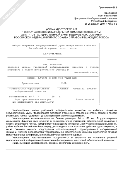 - 3703Форма удостоверения члена участковой избирательной комиссии по выборам депутатов Государственной Думы Федерального Собрания Российской Федерации пятого созыва с правом решающего голоса