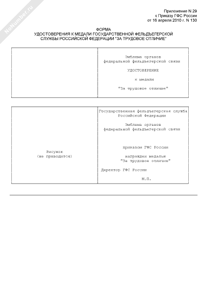 - 3720Форма удостоверения к медали Государственной фельдъегерской службы Российской Федерации «За трудовое отличие»