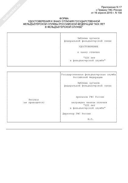 - 3717Форма удостоверения к знаку отличия Государственной фельдъегерской службы Российской Федерации «XXX лет в фельдъегерской службе»