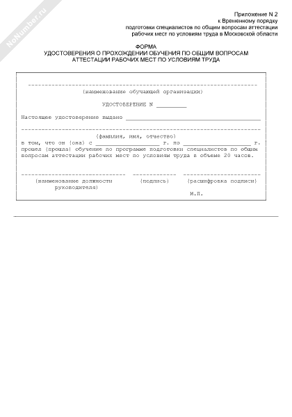 - 3708Форма удостоверения о прохождении обучения по общим вопросам аттестации рабочих мест по условиям труда в Московской области