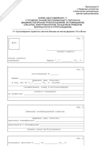 - 3701Форма удостоверения о проверке знаний обслуживающего персонала (машинистов кранов-трубоукладчиков, их помощников, слесарей, электромонтеров, наладчиков приборов безопасности и стропальщиков)