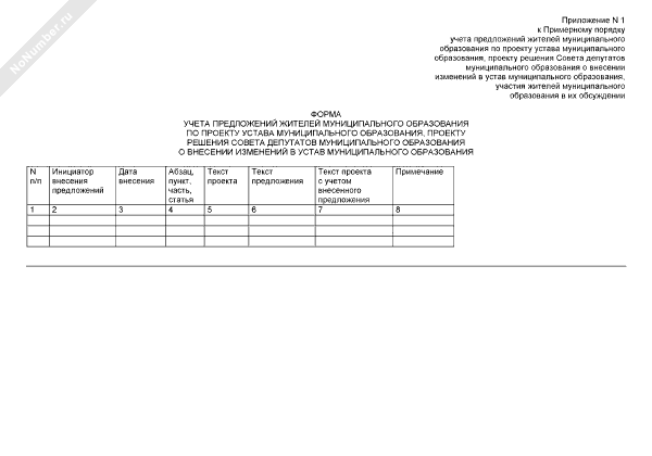 - 3741Форма учета предложений жителей муниципального образования по проекту устава муниципального образования, проекту решения совета депутатов муниципального образования о внесении изменений в устав муниципального образования