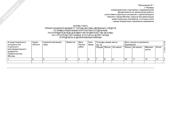 - 3742Форма учета причитающихся бюджету города Москвы денежных средств по инвестиционным контрактам и отдельным распорядительным документам Правительства Москвы на строительство жилья, в которых доля города определена в денежном выражении