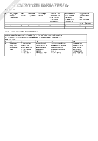 - 3745Форма учета рассмотрения документов о передаче прав и обязанностей по договору водопользования другому лицу