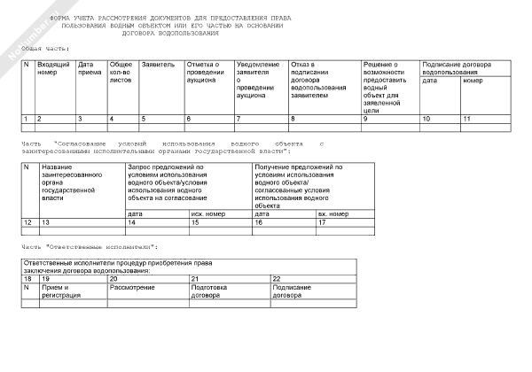 - 3744Форма учета рассмотрения документов для предоставления права пользования водным объектом или его частью на основании договора водопользования