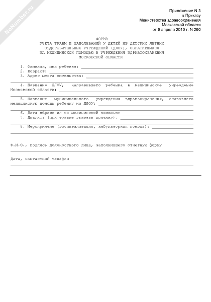 - 3748Форма учета травм и заболеваний у детей из детских летних оздоровительных учреждений (ДЛОУ), обратившихся за медицинской помощью в учреждения здравоохранения Московской области