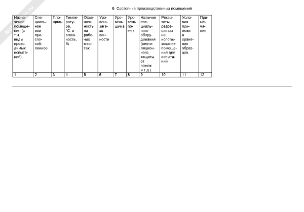- 3815Формы документов, используемых при аккредитации испытательных лабораторий. Состояние производственных помещений (форма № 6)