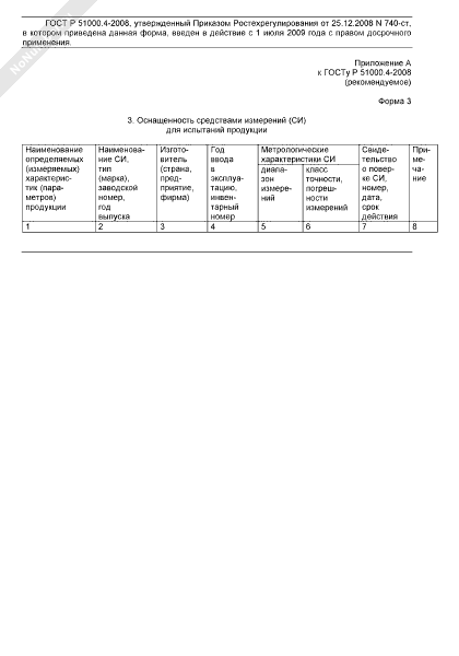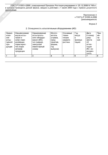 - 3809Формы документов, используемых при аккредитации испытательных лабораторий. Оснащенность испытательным оборудованием (форма № 2)