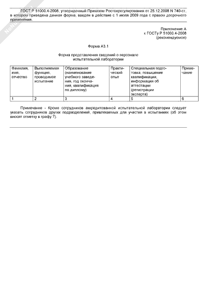 - 3804Формы документов, используемых при аккредитации испытательных лабораторий. Форма представления сведений о персонале испытательной лаборатории. Форма № А3.1